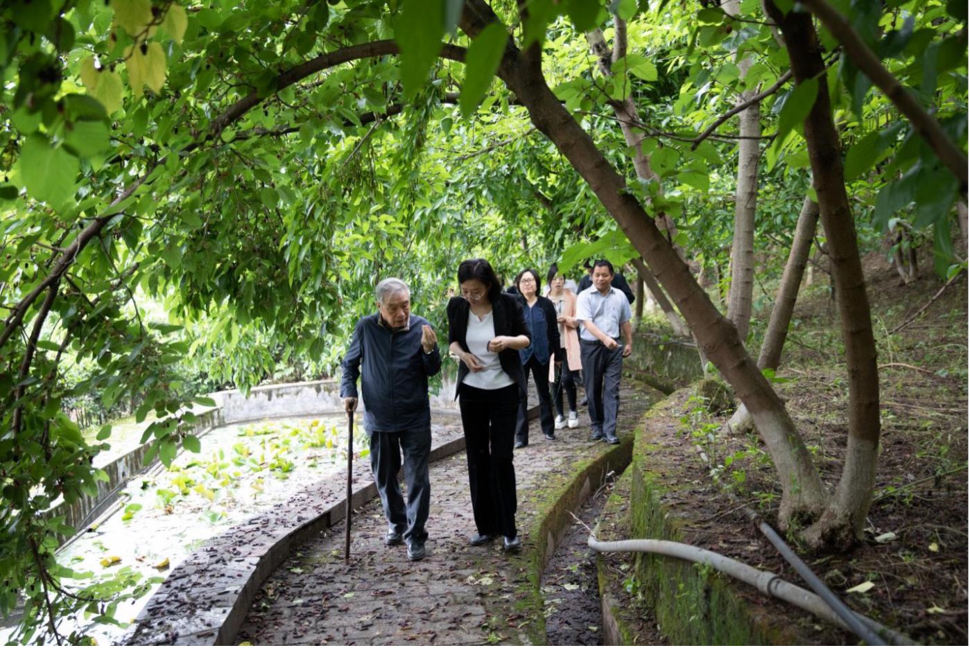 副主任、桑树品改中心主任何宁佳教授等陪同介绍中心情况,让客人了解桑树资源收集保护、评价研究、新品种培育等方面的进展和成果。走在中心桑林小道,摘下一颗颗草莓香味的新品种桑果递给客人品尝,李常委兴致勃勃,随即向向院士提出合作开发的打算来……