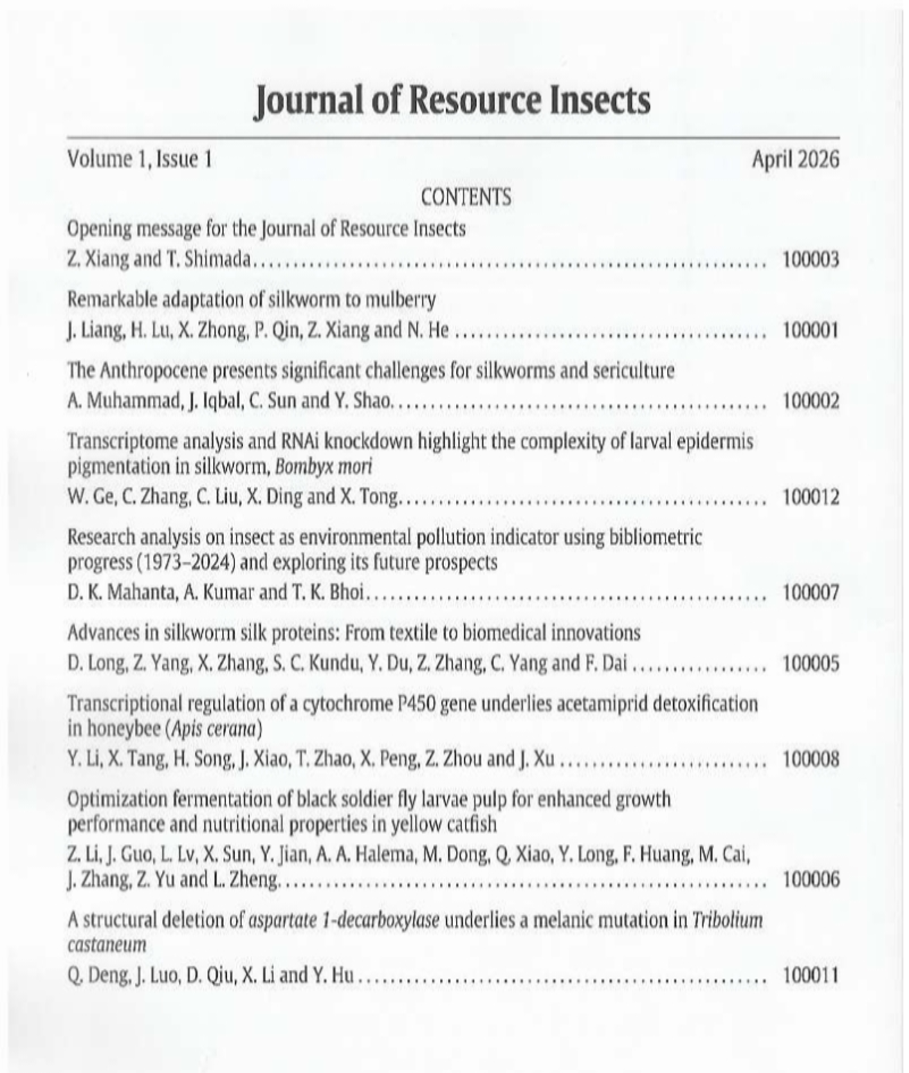 主办、中国蚕学会和中国农业科学院蜜蜂研究所联合创办的全英文期刊 Journal of Resource Insects(资源昆虫杂志,JRI) 创刊号(Volume 1, Issue 1)正式发布,献礼百廿校庆,是我国资源昆虫国际学术期刊建设迈出的重要一步。