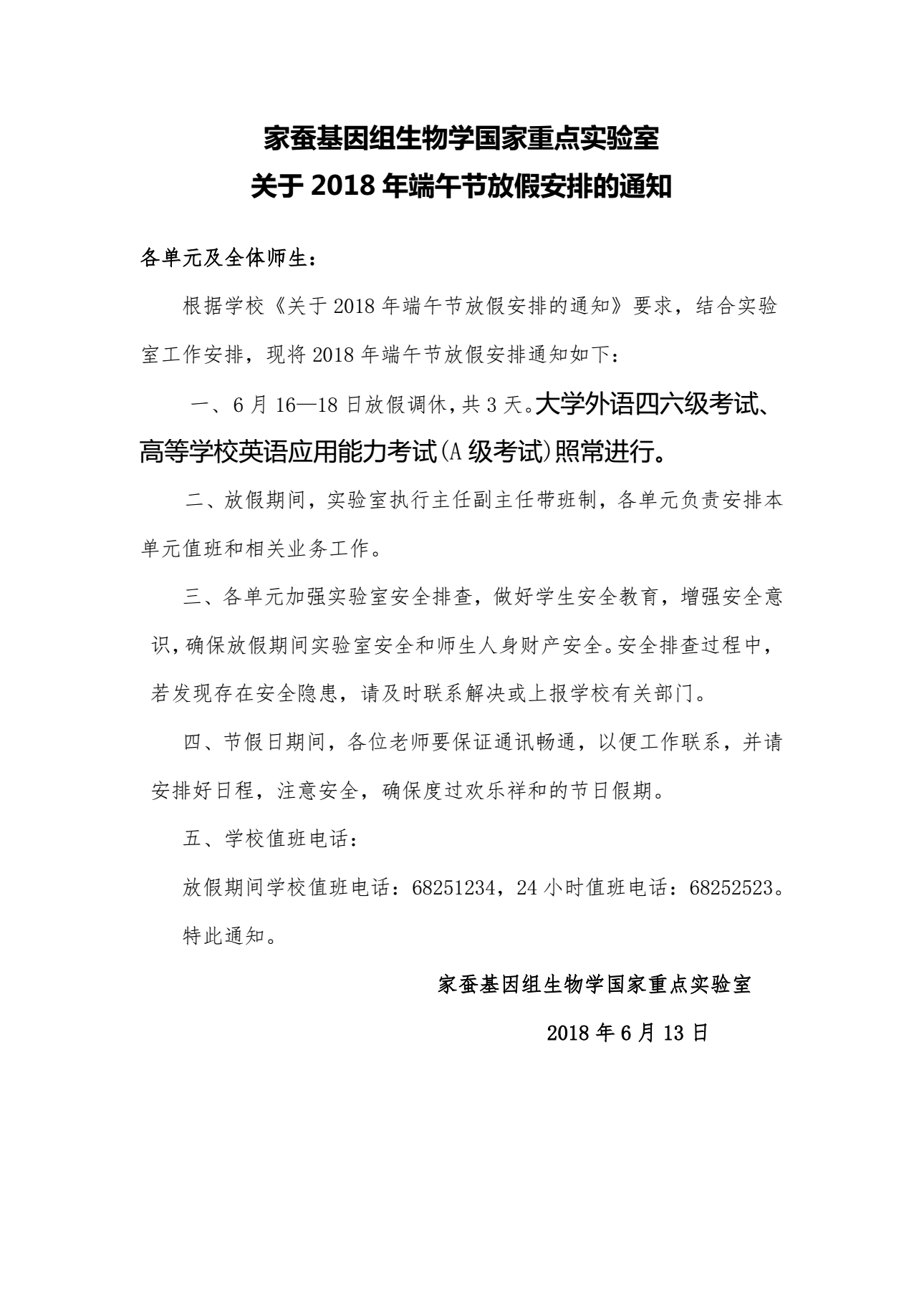 家蚕基因组生物学国家重点iQQtv 关于2018年端午节放假安排的通知