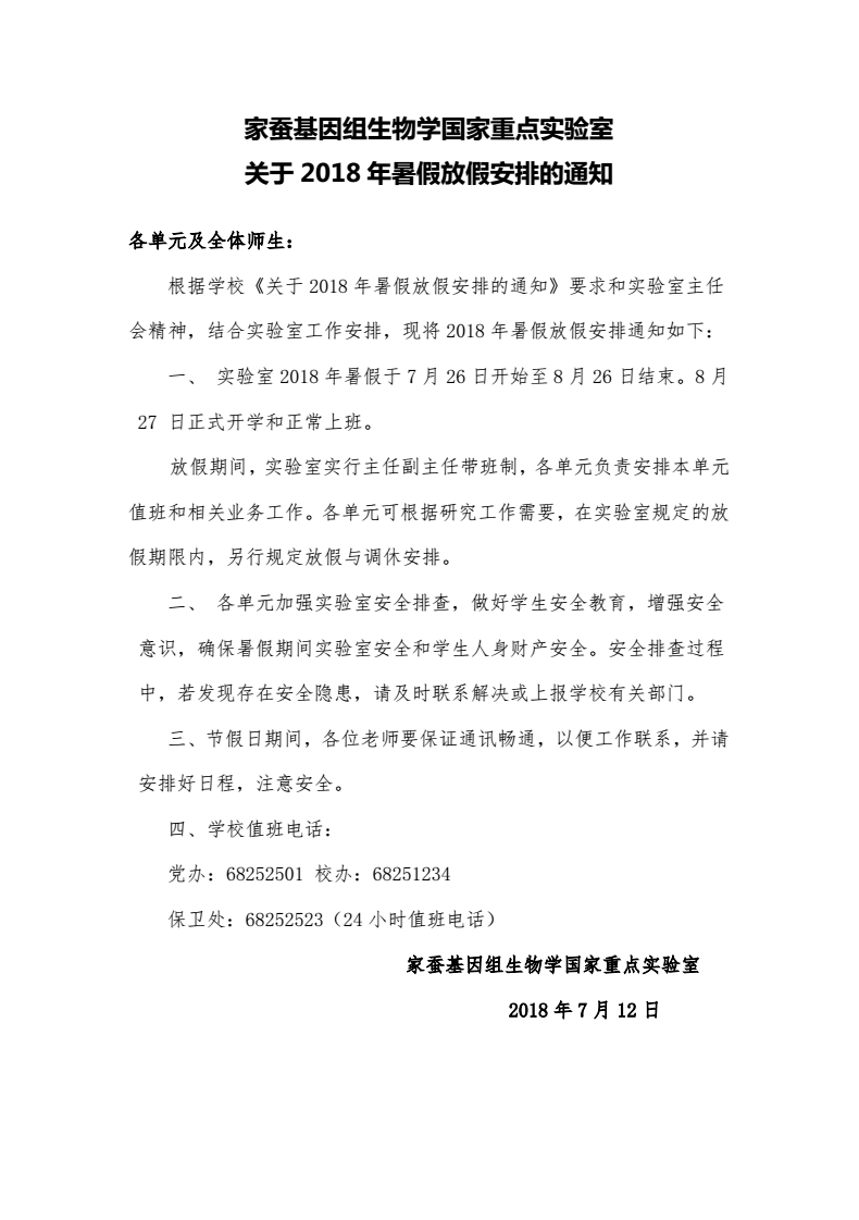 家蚕基因组生物学国家重点iQQtv 关于2018年暑假放假安排的通知