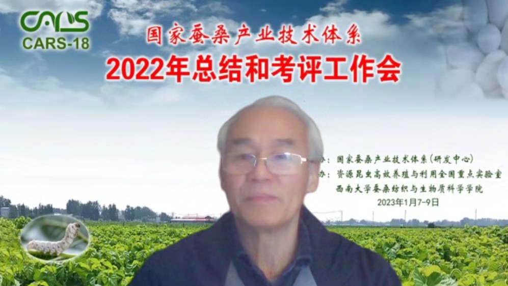 在听取体系人员述职汇报和地方代表发言之后,前任首席科学家鲁成教授从全视角分析了产业发展形势,客观评价了体系工作进展。他表示,2022年是不平凡的一年,国家开启了第二个百年奋斗目标的新征程,体系人员在新的形势下做出了自己最大的贡献。他认为,2022年体系的工作成效显著,亮点纷呈,高水平研究方面取得突破,专家的工作与体系的目标结合更加紧密,综合试验站的任务更实,体现了蚕桑体系的新气象、新作为。同时,他希望专家站长的工作要更进一步结合体系的任务和生产基地的实际,高度重视产业发展新动态。