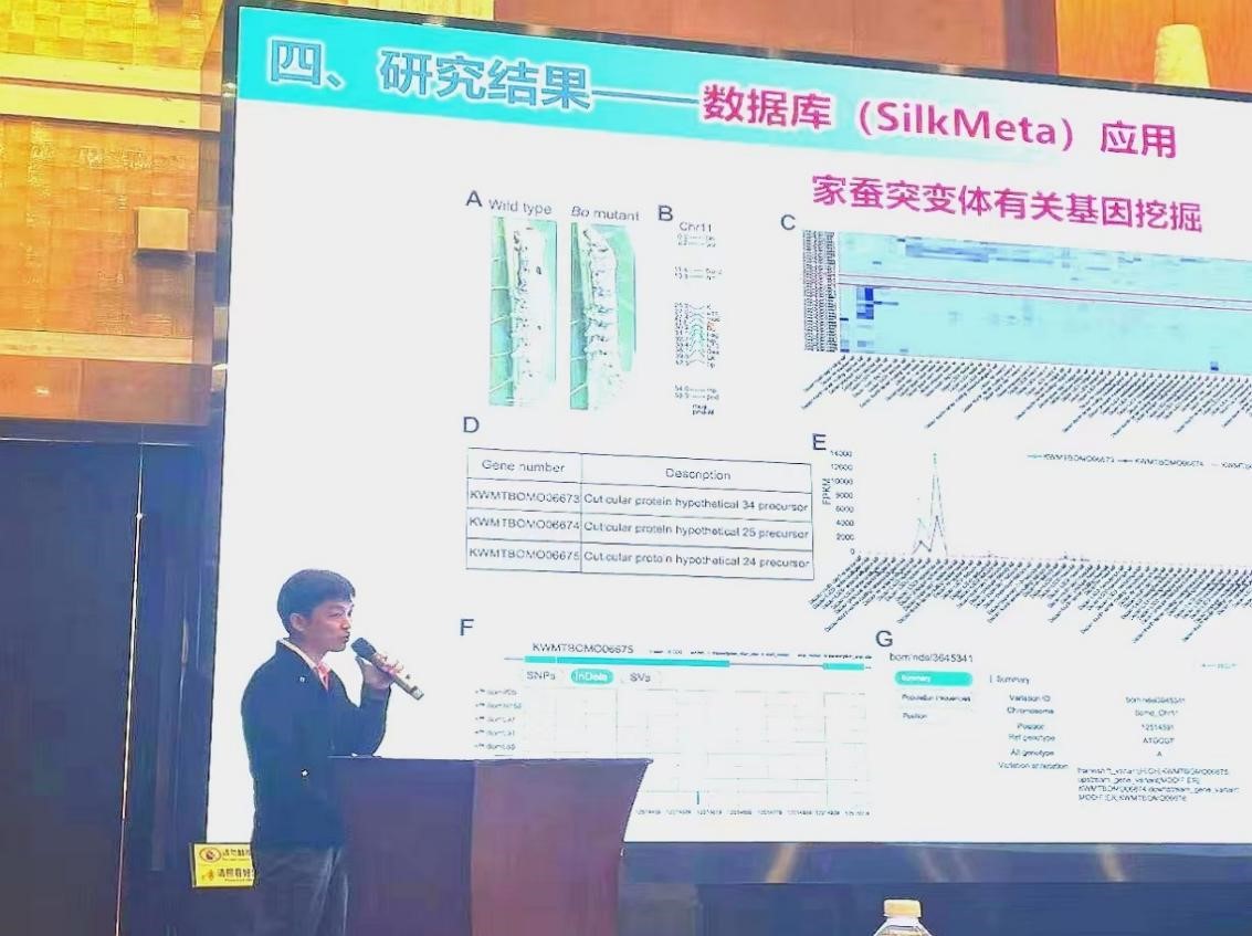 人员在大会中表现积极,作了多个分会报告和墙报展示。宋江波副教授作了题为“FOXO-regulated OSER1 reduces oxidative stress and extends lifespan in multiple species”的报告;龙定沛副教授作了题为“极早期电晕处理介导的蚕卵人工孵化及滞育家蚕品系遗传转化研究”的报告;曾珠副教授作了题为“肠道功能菌促进家蚕生长及抗病性研究”的报告;陆昆鹏老师作了题为“家蚕泛基因组和多组学数据库及其应用”的报告。此外,吴松原老师和鹿亚如博士后分别展示了题为“The BTB-ZF gene Bm-mamo regulates pigmentation in silkworm caterpillars”和“Deciphering the genetic basis of silkworm cocoon colors provides new insights into biological coloration and phenotypic diversification”的墙报。这些报告和墙报展示了iQQtv
