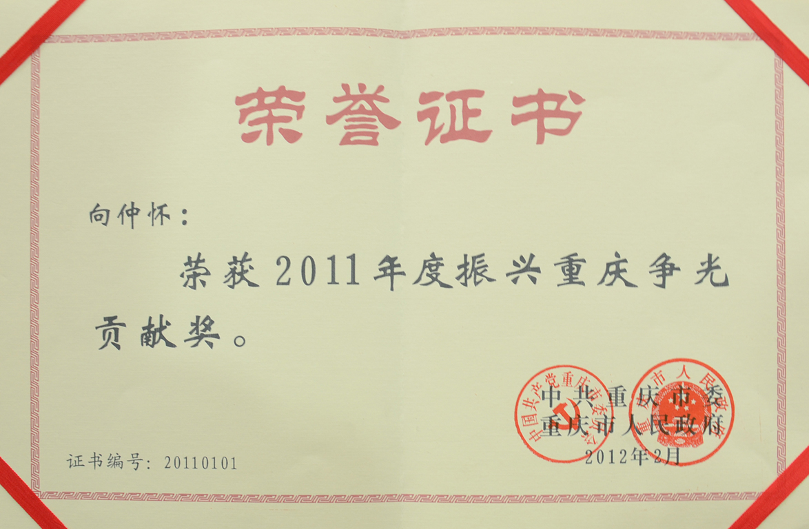 20120227向仲怀院士荣获2011振兴重庆争光贡献奖