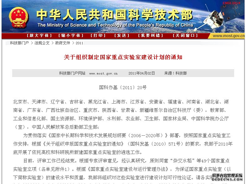 据科技部2011年3月29日文件[国科办基〔2011〕20号]《关于组织制定国家重点iQQtv
