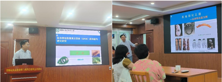 代方银教授邀请,南京师范大学生命科学学院李斌教授、沈阳农业大学生物科学技术学院刘彦群教授来室作学术交流。李斌教授、刘彦群教授分别作了“昆虫(赤拟谷盗)羽化之谜”、“野蚕资源的收集与遗传评价”的学术报告。